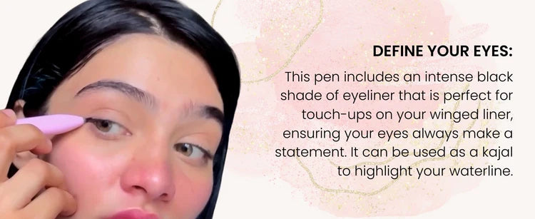 This pen features a bold black eyeliner that’s perfect for touch-ups and creating sharp, flawless wings. Double it up as a kajal on your waterline to make your eyes stand out and add instant drama to your look. 🖤✨